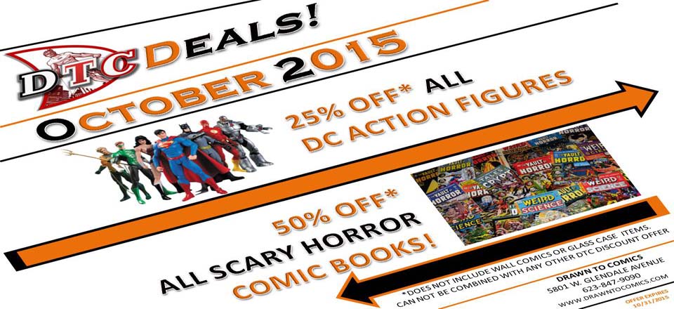 This October’s DTC deals at Drawn To Comics! This month we offer 25% off all DC Comic Action Figures!!! Also this month get 50% off all Scary and Horror Comics* at Drawn To […]