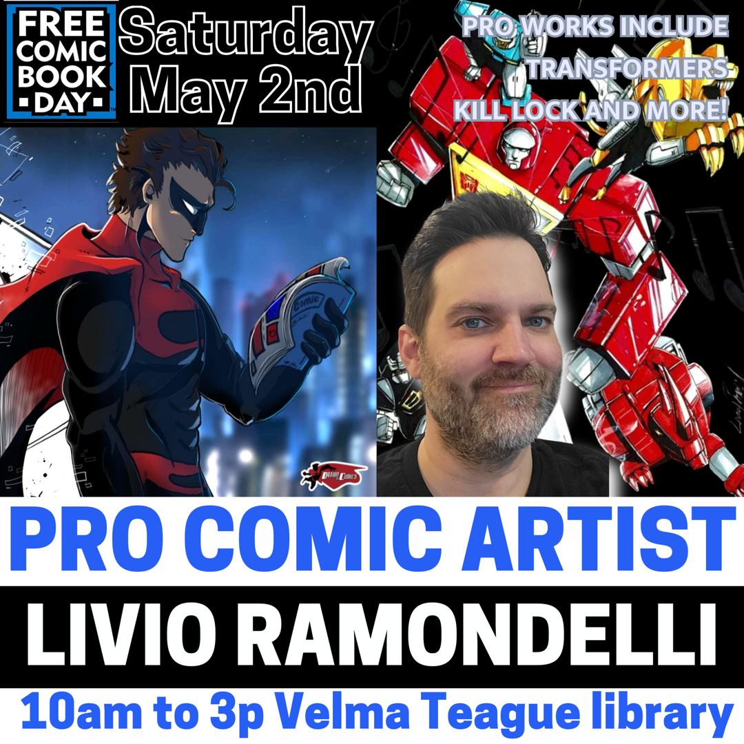 Livio Ramondelli artist of IDW & Skybound Transformers projects will be a guest at this year’s Drawn To Comics FCBD Festival. Livio will be offering the following items at this year’s event.