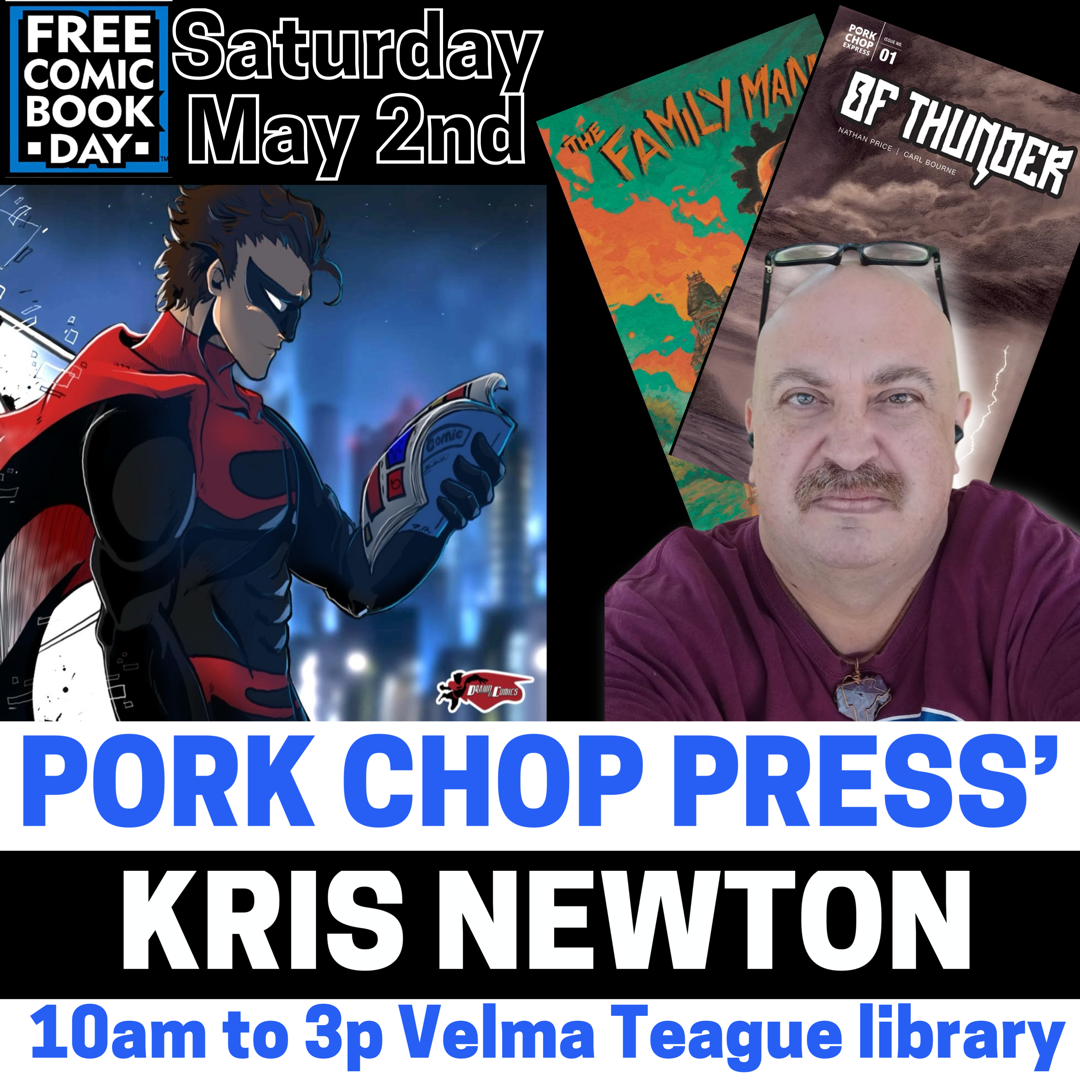 Kris Newton is a writer, creator, and PR person for Pork Chop Press. Kris, is a visually impaired creator. Having worked with Latique Curry and Scott Shehi, from TRIBE Comics. Kris is continuing to create and write new projects for his new imprint, K6 Dark. In addition to creating a podcast talking to other creators