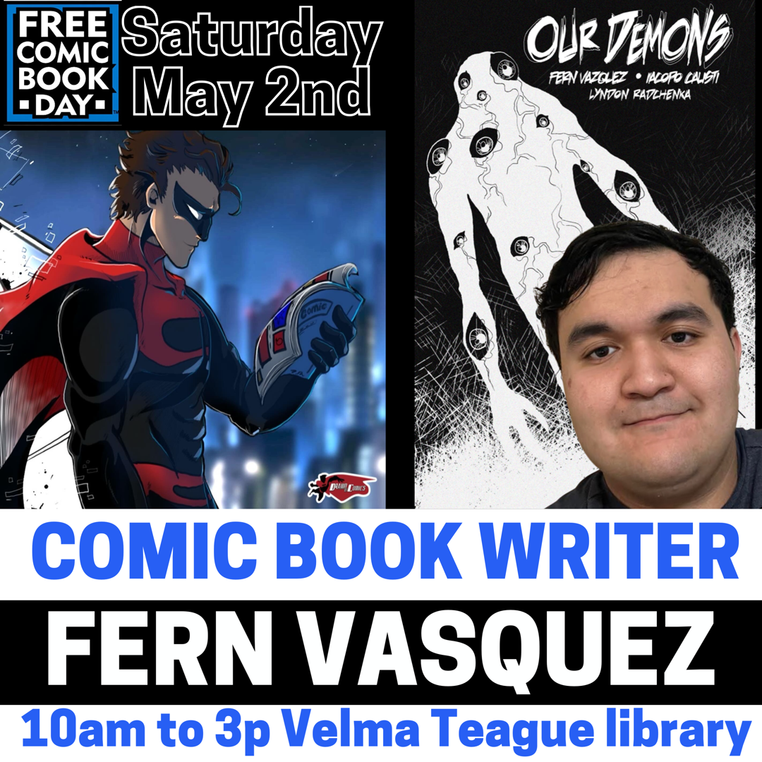 Fern Vazquez creator/writer of Our Demons will be one of the great guests attending this year’s DrawnToComics Free Comic Book Day Festival!