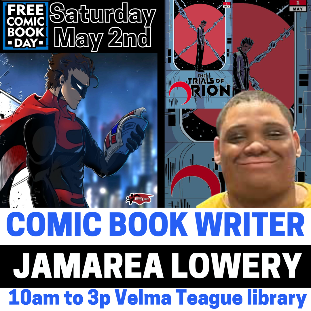 Trials of Orion comic book creator/writer Jamarea Lowery will be one of the great guests attending this year’s DrawnToComics Free Comic Book Day Festival!