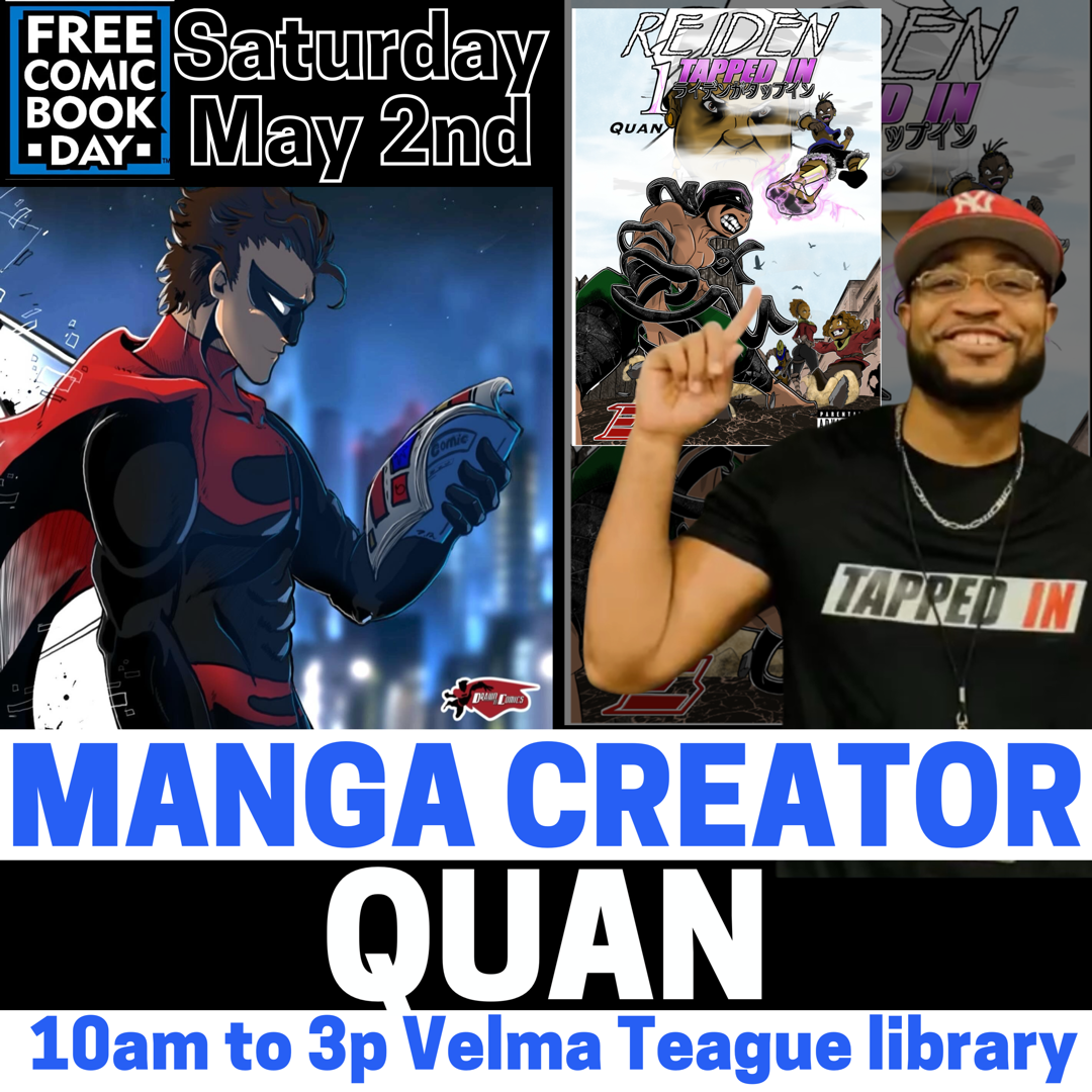 Raiden Tapped In Manga creator Quan will be one of the great guests attending this year’s DrawnToComics Free Comic Book Day Festival!