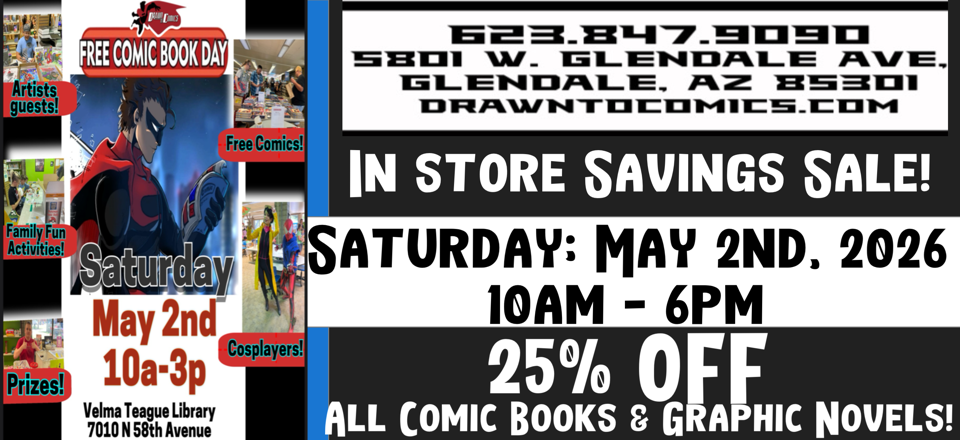 25% OFF ALL COMIC BOOK AND GRAPHIC NOVELS MAY 3RD FROM 10A-6P AT DRAWN TO COMICS!